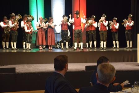 Die Musikkapelle Altötting bei ihrem Auftritt zwischen den Grußworten der Redner.