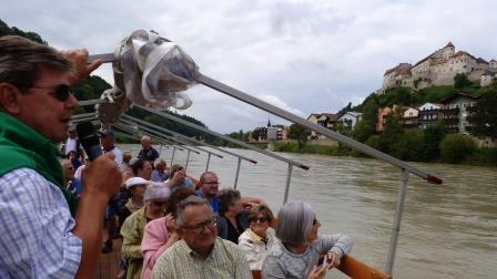 Das Vormittagsprogramm am 29. Juli 2016 startete mit einer Plättenfahrt auf der Salzach von Tittmoning nach Burghausen.