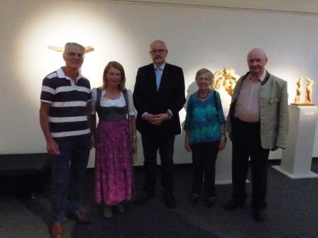 Besuch der Ausstellung "Donna-Acqua-Terra" der Künstlerin Paola Ceccarelli zusammen mit (v. links) Franco Papini, Vorsitzender des Loreto-Altötting-Clubs, Mariele Vogl-Reichenspurner, Vorsitzende des Altötting-Loreto-Clubs, Erstem Bürgermeister Herbert Hofauer sowie Helga und Richard Antwerpen, Altbürgermeister und Ehrenbürger der Kreisstadt Altötting, in der Stadtgalerie. (Foto: Stadt Altötting)