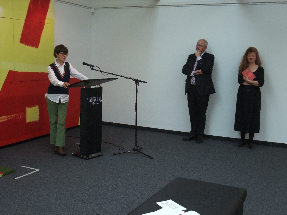 Zum Ende der Ausstellung wurde durch eine Lesung von Gila Prast, sowie die Vorstellung des eigens zur Ausstellung erschienenen 40seitigen Kataloges das Werk von Gertrude Elvira Lantenhammer gewürdigt.