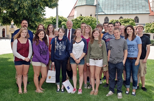 Erster Bürgermeister Herbert Hofauer begrüßte am 26. Juni 2012 im Großen Sitzungssaal des Altöttinger Rathauses eine Gruppe von Austauschschülerinnen und -schüler mit ihren Lehrkräften Wendy Andrews und Jeff Martin aus der amerikanischen Stadt Lititz in Lancaster County, Pennsylvania. Der Schüleraustausch wurde vom König-Karlmann-Gymnasium organisiert und besteht mittlerweile seit 23 Jahren. Erster Bürgermeister Herbert Hofauer gab den Gästen aus den USA einen Einblick in die Stadtgeschichte von Altötting. Nach dem Empfang wurde vor dem Rathaus noch ein Erinnerungsfoto gemacht. Die Gruppe bleibt noch bis 11. Juli im Landkreis, um die bayerische Kultur und Lebensart kennenzulernen, u. a. werden noch Ausflüge nach Berchtesgaden, Salzburg und zum Schloss Neuschwanstein unternommen.