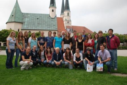 Erster Bürgermeister Herbert Hofauer begrüßte am Montag, 29. Juni 2009 im Großen Sitzungssaal des Rathauses Austauschschülerinnen und -schüler mit ihrer Lehrkraft aus Appleton/ Wisconsin (USA). Den Austausch organisieren seit vielen Jahren die Maria-Ward-Schulen. Erster Bürgermeister Herbert Hofauer berichtete über die Stadtgeschichte Altöttings. Als Erinnerung wurde vor der Altöttinger Gnadenkapelle ein Foto gemacht.