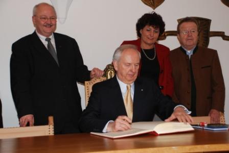 Am <?xml:namespace prefix = st1 ns = "urn:schemas-microsoft-com:office:smarttags" /><st1:date ls="trans" Month="2" Day="26" Year="2010">26. Februar 2010</st1:date> besuchte der Vizepräsident des Europäischen Parlaments a. D. und Präsident des Europäischen Wirtschaftssenats (EWS), Dr. Ingo Friedrich, die Kreis- und Wallfahrtsstadt Altötting. Erster Bürgermeister Herbert Hofauer begrüßte den hohen Gast und die geladenen Gäste im Altöttinger Rathaus. Dr. Friedrich bedankte sich für den herzlichen Empfang und trug sich anschließend in das „Goldene Buch“ der Stadt Altötting ein.