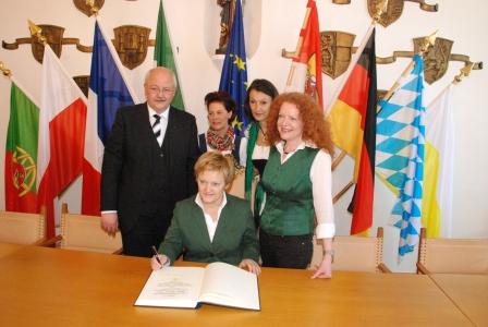 Am 28. Mai 2013 empfing Erster Bürgermeister Herbert Hofauer im Großen Sitzungssaal des Rathauses der Kreis- und Wallfahrtsstadt Altötting Frau Bundesministerin a. D. Renate Künast MdB, Fraktionsvorsitzende Bündnis 90/Die Grünen im Deutschen Bundestag sowie Frau Margarete Bause MdL, Fraktionsvorsitzende Bündnis 90/Die Grünen im Bayerischen Landtag. Die Gäste befinden sich im Rahmen einer Veranstaltungstour durch Südostbayern im Landkreis Altötting. Nach der Begrüßung der zahlreichen Gäste durch Ersten Bürgermeister Herbert Hofauer richteten die beiden Ehrengäste sowie Frau Monika Pfriender, Kreisvorstandssprecherin Bündnis 90/Die Grünen und Altöttinger Kreisrätin herzliche Grußworte an die geladenen Gäste. Danach trugen sie sich in das „Goldene Buch“ der Kreisstadt Altötting ein und besuchten unter Führung von Stadtpfarrer Prälat Günther Mandl die Gnadenkapelle.