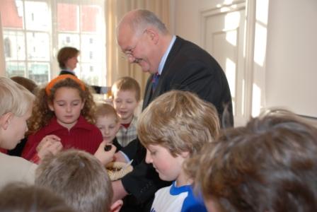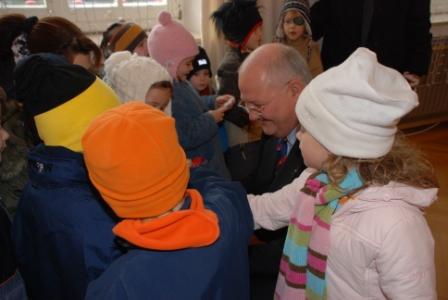Bereits am Vormittag gratulierten u. a. Kinder aus den Altöttinger Kindergärten und Schülerinnen und Schüler der Altöttinger Schulen dem Jubilar.