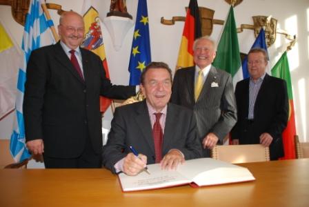 v. links: Erster Bürgermeister Herbert Hofauer, Bundeskanzler a. D. Gerhard Schröder,
