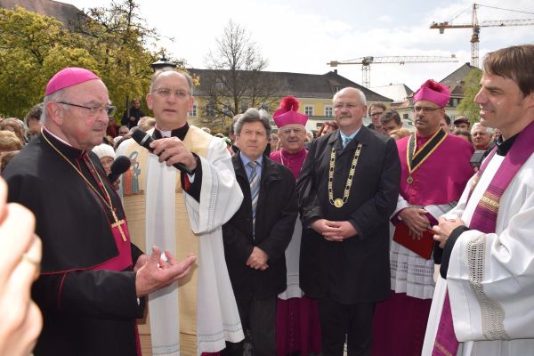 des Diözesanrates der Diözese Passau, Wolfgang Beier, Kapelladministrator Ludwig Limbrunner, Erster Bürgermeister Herbert Hofauer sowie Landrat Erwin Schneider und Stiftsprobst Prälat Günther Mandl den hohen Gast. Bereits vor seinem