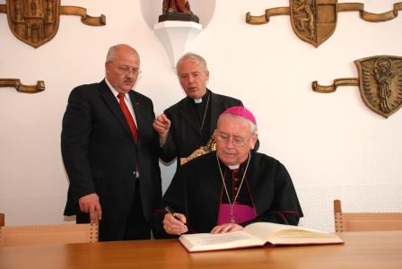 Erster Bürgermeisters Herbert Hofauer empfing am Dienstag, 31. Juli 2007 Seine Exzellenz H. H. Diözesanbischof Dr. Ludwig Schwarz aus Linz und Seine Exzellenz H. H. Hulpbisschop Mgr. Dr. Everhardus Johannes de Jong aus Roermond in den Niederlanden im Sitzungssaal des Rathauses. Die Gäste kamen anlässlich des XII. Internationalen Jugendforums in die Wallfahrtsstadt. In Anwesenheit der Organisatoren und den Verantwortlichen der Gemeinschaft Emmanuel trugen sich die hochrangigen Besucher in das Goldene Buch der Stadt Altötting ein.