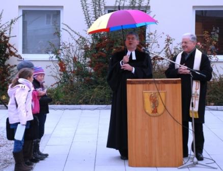 Unter dem Schutzschirm von Pfarrer Thoma (Fotos Stadt Altötting)