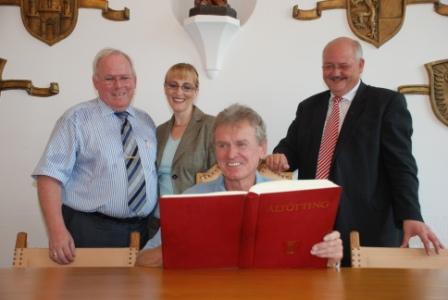 Der 95-fache Fußballnationalspieler Sepp Maier besuchte auf Einladung von Familie Dr. Saller die Stadt Altötting. Im Rahmen einer Benefizaktion zugunsten des Kinderdorfes von Gerd Brandstetter in Guarabira/Brasilien signierte die Torwartlegende Fußbälle, die versteigert werden. Anlässlich dieses Besuchs empfing Erster Bürgermeister Herbert Hofauer am <?xml:namespace prefix = st1 ns = "urn:schemas-microsoft-com:office:smarttags" /><st1:date Year="2008" Day="30" Month="7" ls="trans">30. Juli 2008</st1:date> Sepp Maier im Großen Sitzungssaal des Altöttinger Rathauses. Der Weltmeister von 1974 hat sich dabei auch ins Goldene Buch der Stadt eingetragen.