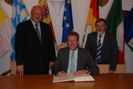 Am <?xml:namespace prefix = st1 ns = "urn:schemas-microsoft-com:office:smarttags" /><st1:date ls="trans" Month="10" Day="26" Year="2009">26. Oktober 2009</st1:date> besuchte der Staatssekretär im Bayerischen Staatsministerium für Unterricht und Kultus, Dr. Marcel Huber MdL, die Kreis- und Wallfahrtsstadt Altötting. Erster Bürgermeister Herbert Hofauer begrüßte den Staatssekretär und die anwesenden Gäste im Großen Sitzungssaal des Altöttinger Rathauses. Staatssekretär Dr. Marcel Huber bedankte sich für den herzlichen Empfang, anschließend trug er sich in das „Goldene Buch“ der Kreisstadt Altötting ein.