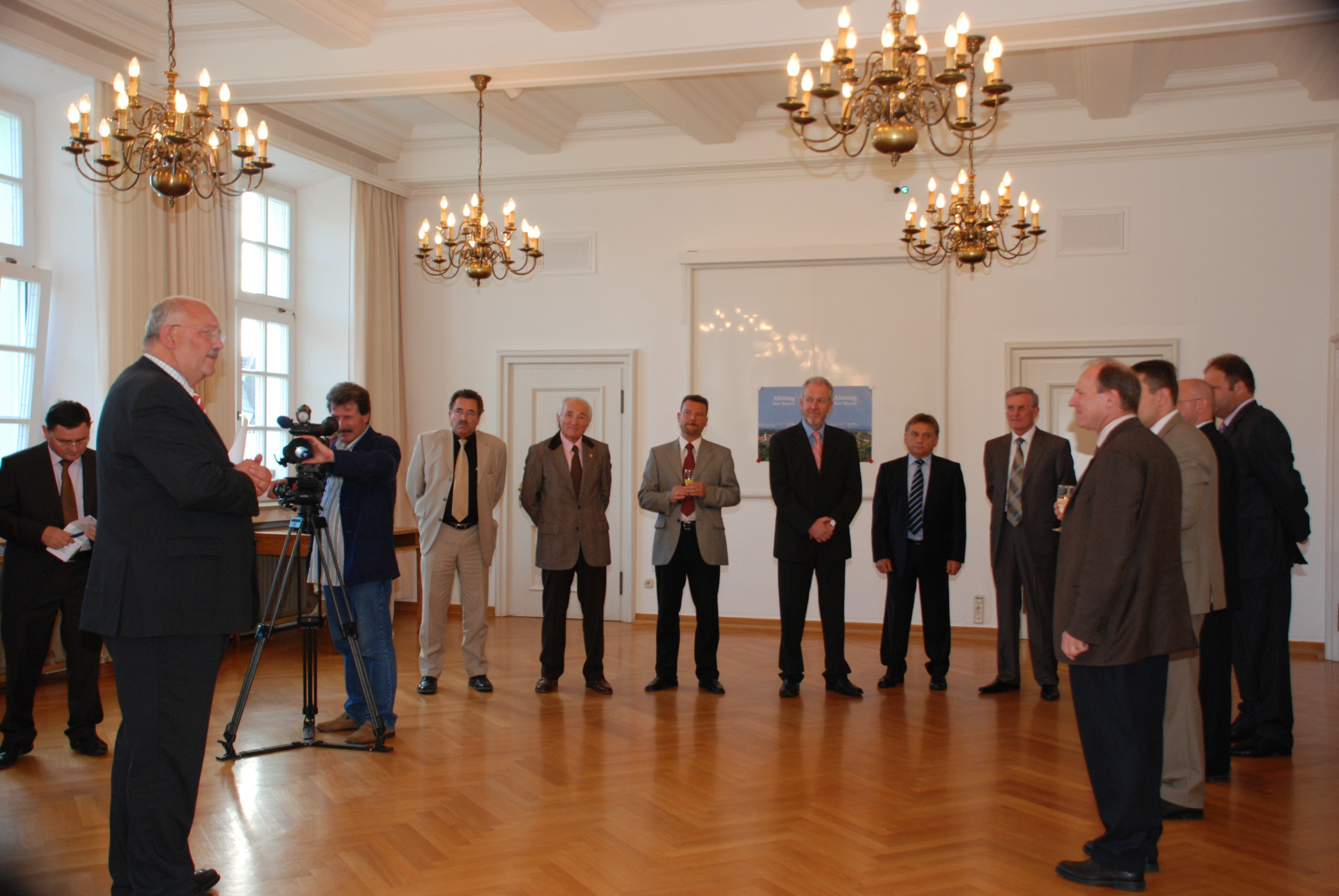 Erster Bürgermeister Herbert Hofauer, Landrat Erwin Schneider und Städtebund-Aufsichtsratsvorsitzender Günther Knoblauch, Erster Bürgermeister der Stadt Mühldorf a. Inn begrüßten am Dienstag, 26. Juni 2007, den russischen Wirtschaftsrepräsentanten Herrn Yury Azarov (Vizepräsident der Moskauer Industrie- und Handelskammer), Herrn Dr. Igor V. Gladkov (Berater des Präsidenten der IHK Moskau, Vorsitzender der Kommission für Wirtschafts- und Handelsbeziehungen mit Deutschland der IHK Moskau) und Delegation sowie Vertreter der Kommunalpolitik und der Wirtschaft aus den Landkreisen Altötting und Mühldorf a. Inn im großen Sitzungssaal Rathaus der Kreisstadt Altötting.