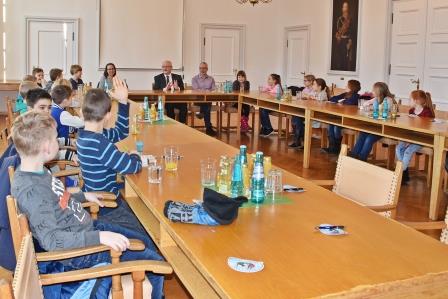 Und nochmal darf der Erste Bürgermeister Herbert Hofauer im Großen Sitzungssaal im Rathaus eine Schulklasse begrüßen. Am 27. Januar 2017 empfing er die Schülerinnen und Schüler der Klasse 4d der Josef-Guggenmos-Grundschule Altötting-Süd mit ihrer Klassenlehrerin Frau Hermann. Herr Ersten Bürgermeister Herbert Hofauer berichtet über die vielfältigen Aufgaben der Stadt und stellt sich im Nachgang den vielen Fragen der wissbegierigen Kinder. Anschließend erhielten Sie eine Führung durch das Altöttinger Rathaus von unserem Abteilungsleiter Rainer Steinbrecher, bei der die einzelnen Abteilungen besucht wurden.