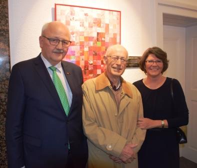 v. links: Erster Bürgermeister Herbert Hofauer zusammen mit Herrn Fritz Breu, dem Ideengeber der Ausstellung und Frau Eva-Maria Schwarzmaier, Vorsitzende der Künstlergruppe