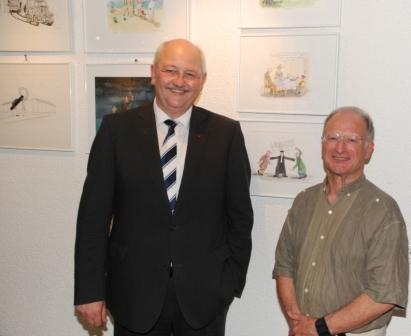 Am Donnerstag, 18. Juli 2013 eröffnete Erster Bürgermeister Herbert Hofauer im Foyer des Rathauses der Kreisstadt Altötting die Ausstellung „Kleine besondere Vorkommnisse“ des bekannten Karikaturisten Erik Liebermann, der bei der Vernissage persönlich anwesend war. Erik Liebermann, studierter Industrie-Designer, wollte sich eigentlich mit ästhetischen Dingen beschäftigen. Doch 1969 lief ihm ein merkwürdiger Typ mit Mantel und Glupschaugen über den Skizzenblock und brachte ihn strichweise dazu, witziges für Zeichnungen, Zeitschriften, Bücher und die Werbung zu zeichnen. Seine Figur glaubt man gelegentlich in Alltagssituationen wiederzuerkennen. Anton Glupsch ein Mensch wie Du und ich? Bei den Zeichnungen steckt hinter dem vordergründigen Witz oft eine Portion hintergründiger Humor, der nachdenklich stimmt. Das Spektrum reicht vom Nonsens bis hin zu kritischen aktuellen Themen. Collagen und plastische Details ergänzen die Arbeiten zu den Bildern, die sich so im Druck nur unzureichend wiedergeben ließen. Die ansprechenden und wirklich lustigen Werke können bis 9. August 2013 zu den üblichen Öffnungszeiten des Altöttinger Rathauses besichtigt werden. Die gut besuchte Vernissage wurde von dem bekannten Mühldorfer Allround-Künstler, Hans Kotter, einem Freund von Herrn Liebermann, musikalisch umrahmt.