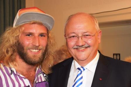 v. links: Der Künstler der Ausstellung, Toninho Dingl, zusammen mit Erstem Bürgermeister Herbert Hofauer.