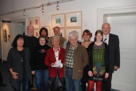Die ausstellenden Künstlerinnen und Künstler der Radierwerkstatt zusammen mit Erstem Bürgermeister Herbert Hofauer (ganz rechts, 2. Reihe).