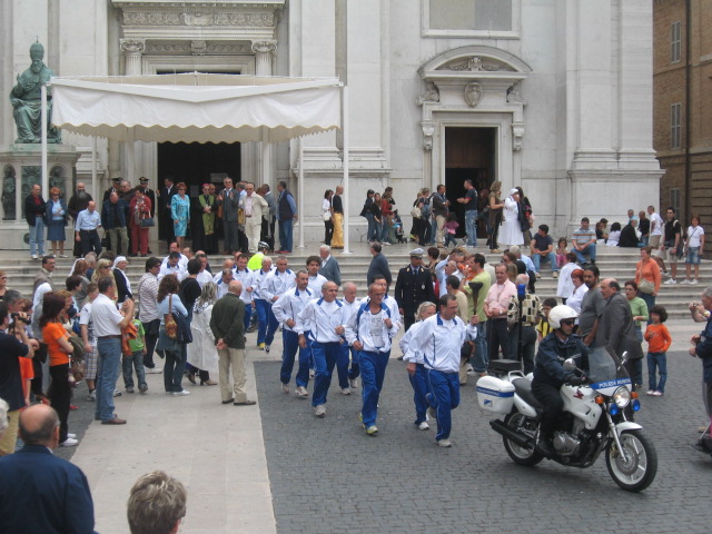 Eine Läufergruppe aus unserer italienischen Partnerstadt Loreto brachte die von Papst Benedikt XVI. entzündete Friedensfackel, die im Mai 2005 von Läufern der Skiabteilung des TV Altötting nach Loreto getragen wurde, auf den Kapellplatz der Kreisstadt Altötting zurück.