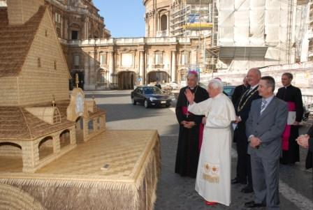 Im Vorfeld der offiziellen Generalaudienz am Petersplatz in Rom am Mittwoch, 22. Oktober 2008, hat Seine Heiligkeit Papst Benedikt XVI. das "Covo", eine Nachbildung der Altöttinger Gnadenkapelle, im Vatikan gesegnet. Das "Covo" wurde aus einem ganz besonderen Weizenstroh angefertigt, das nur in Campocavallo di Osimo in der italienischen Provinz Marken wächst. Campocavallo liegt unweit von Loreto, der Partnerstadt Altöttings. In monatelanger gemeinsamer Arbeit haben die dort lebenden Einheimischen nach alter Tradition das Modell maßstabgetreu nachgebildet. Im August dieses Jahres wurde das Modell anlässlich der Feierlichkeiten zum Fest Mariä Himmelfahrt nach Altötting gebracht, wo es bei der großen Lichterprozession mit S. E. Bischof Wilhelm Schraml am Vorabend, dem 14. August 2008, mitgeführt wurde. An den darauffolgenden Tagen wurde es auf dem Altöttinger Kapellplatz präsentiert, wo sich viele Gäste, Pilger und Einheimische begeistert von dem Kunstwerk zeigten.