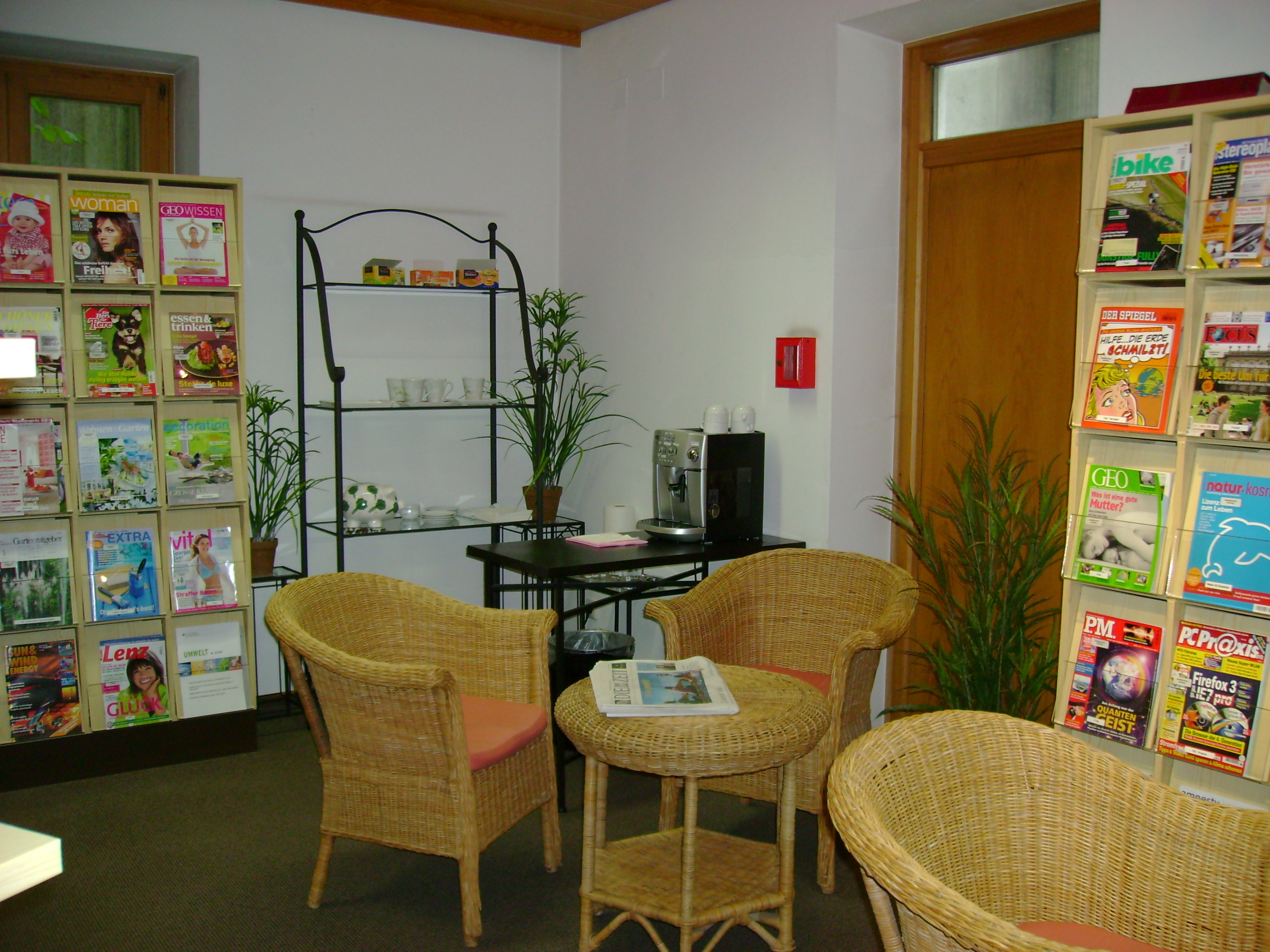 Die Bücherei der Kreisstadt Altötting wurde mit einer sehr einladenden und gemütlichen Leseecke ausgestattet. Die bequemen Korbstühle und die Kaffee- und Espressomaschine laden zum Schmöckern und Verweilen ein. Insgesamt sechs Sitzmöglichkeiten bietet die Bücherei ihren Lesefreunden. Nehmen Sie sich Zeit und genießen Sie das Serviceangebot der Stadtbücherei.