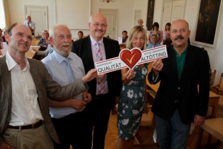 „Altöttinger Herz - Shoppen mit Qualität“, so heißt das aktuelle Projekt von „Aktive Innenstadt Altötting“, das sich zum Ziel gesetzt hat, den Einkaufsstandort Innenstadt Altötting weiter zu stärken. Im Rahmen einer Veranstaltung zur Verleihung der Zertifikate an die teilnehmenden Einzelhandelsbetriebe am 26.05.2011 im Rathaus der Stadt Altötting wurden nun die ersten Einzelhandelsbetriebe mit dem Qualitätssiegel „Altöttinger Herz“, dem Zeichen für Shopping mit Qualität in der Innenstadt Altöttings, prämiert.<?xml:namespace prefix = o ns = "urn:schemas-microsoft-com:office:office" /><o:p></o:p>