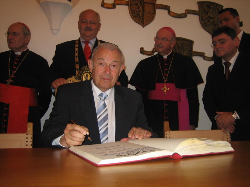 Erster Bürgermeister Herbert Hofauer hat am Freitag, 15. August 2008 S. E. Erzbischof Joachim Kardinal Meisner, S. E. Diözesanbischof Wilhelm Schraml sowie den Bayerischen Ministerpräsidenten Dr. Günther Beckstein anlässlich der Verleihung der „Goldenen Rose“ im Großen Sitzungssaal des Rathauses in Altötting empfangen. Als Päpstlicher Legat überbrachte der Kölner Erzbischof Joachim Kardinal Meisner die „Goldene Rose“ und überreichte sie im Rahmen eines Pontifikalgottesdienstes in der Basilika St. Anna dem Passauer Diözesanbischof Wilhelm Schraml. Die „Goldene Rose“ ist eine aus Gold gefertigte Blüte, die Jesus Christus symbolisiert und künftig in der Gnadenkapelle zu sehen sein wird. Die hochrangigen Gäste haben sich in das Goldene Buch der Stadt Altötting eingetragen.