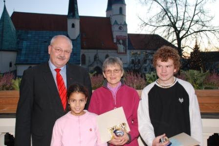Die Gewinner nahmen am <st1:date Year="2008" Day="16" Month="12" ls="trans">16. Dezember 2008</st1:date> im Großen Sitzungssaal des Rathauses aus der Hand von Ersten Bürgermeister Herbert Hofauer schöne Siegerurkunden und die ausgelobten Eisdielengutscheine im Wert von 30,-- € für <st1:date Year="20" Day="1" Month="8" ls="trans">den 1. Sieger, 20</st1:date>,-- € für den 2. Sieger und 10,-- € für die 3. Siegerin entgegen.