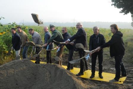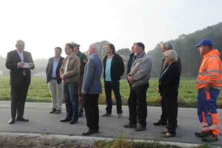 Im Bild (von links nach rechts): Richard Wiesinger, Tiefbauamt der Stadt Altötting, Grundstückseigentümer Anton Grundner, Zweiter Bürgermeister Wolfgang Sellner, Dritter Bürgermeister Konrad Heuwieser, Konrad Reischer, Polizei Altötting, Christof Feuchtgruber, Niederlassungsleiter der Firma Swietelsky, Erster Bürgermeister Herbert Hofauer, Gründstückseigentümer Alois Meisl, Bauleiter Dieter Kastenhuber, Firma Swietelsky beim Spatenstich.