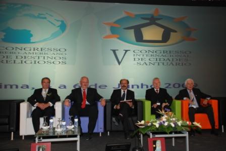 v. links: Herr Vieira (Moderator des II. Ibero-amerikanischen Kongresses in Fatima), Erster Bürgermeister Herbert Hofauer, Bürgermeister Dr. Vitor Manuel Jesus Frazão (Ourèm/Fatima), Oberbürgermeister Dr. inż. Tadeusz Wrona (Tschenstochau), Bürgermeister Helmut Pertl (Mariazell)