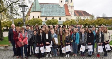 Erster Bürgermeister Herbert Hofauer empfing am 18. April 2016 im Großen Sitzungssaal des Altöttinger Rathauses 33 Austauschschülerinnen und -schüler mit ihren Lehrkräften Katalin Orban-Kerekes und Csilla Gjurász aus der ungarischen Stadt Esztergom. Die Stadt Esztergom liegt in Nord-Ungarn, direkt an der Donau an der Grenze zur Slowakei. Organisiert wird der Schüleraustausch von den Maria-Ward-Schulen Altötting unter der Leitung von Franz Becher, er findet heuer bereits zum achten Mal statt. Erster Bürgermeister Herbert Hofauer erzählte den ungarischen Gästen über die Stadtgeschichte von Altötting. Zur Erinnerung wurde auf dem Kapellplatz noch ein Foto gemacht. Die Gäste bleiben noch bis zum 23. April in Altötting, um die bayerische Lebensart und Kultur kennenzulernen, außerdem werden in den nächsten Tagen noch Ausflüge zum Chiemsee, nach Burghausen, Marktl und nach Berchtesgaden und Salzburg unternommen.