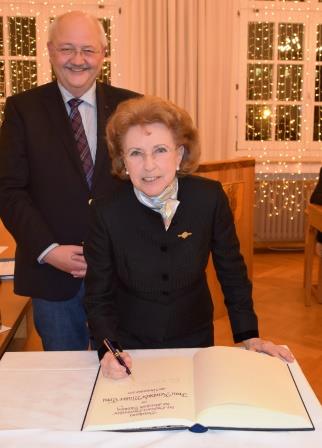 v. links: Erster Bürgermeister Herbert Hofauer sowie Frau Reinhilde Müller-Trisl beim Eintrag in das "Goldene Buch" der Kreisstadt Altötting.