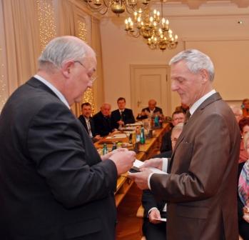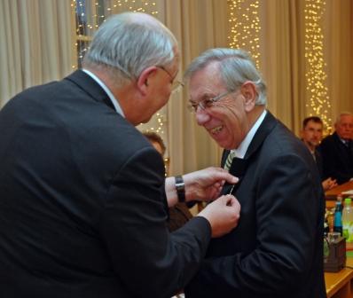 Gruppenfoto mit den neuen Trägern der "Goldenen Ehrennadel"