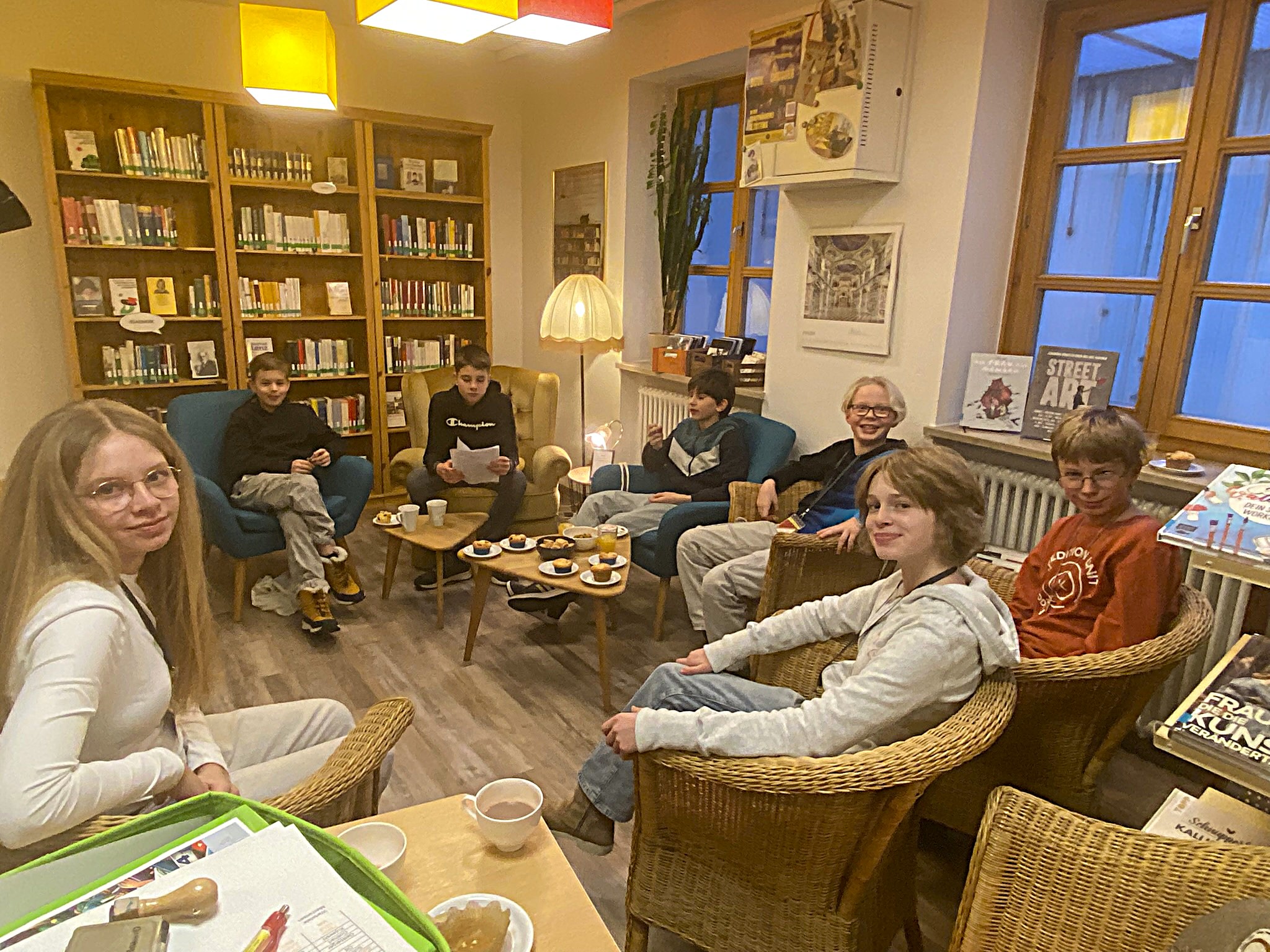 Mit einer gemütlichen Leserunde ist der Buchclub ins neue Jahr gestartet. Bei Muffins, Keksen und heißem Kakao lauschten die Teilnehmer stimmungsvollen Geschichten, die von Paulina, Maxi und Viktoria vorgetragen wurden. Für einen Ausblick sorgte Julian, der das Intro zu einem neuen Filmprojekt präsentierte, das im Sommer realisiert werden soll.