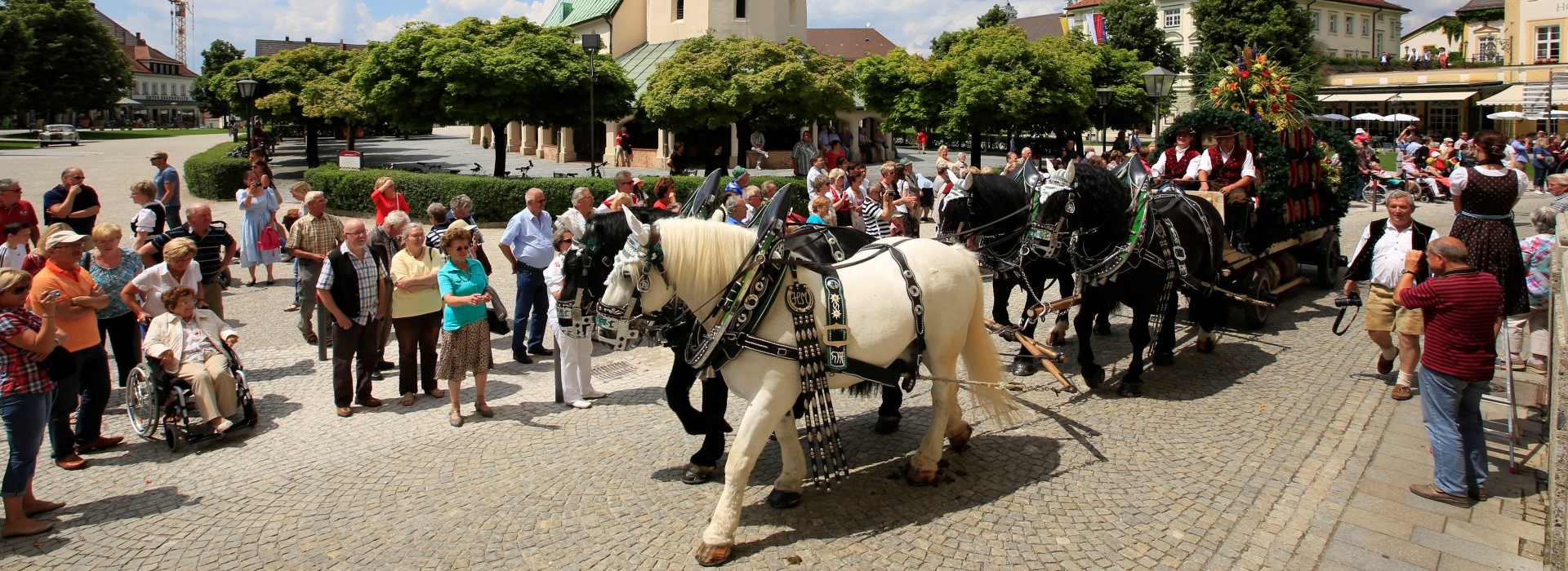 Nach Tradition wird der Kirta mit einem Kirtaauszug eröffnet. Der Festzug mit Blasmusik und geschmückten Kutschengespannen führt über den Kapellplatz, Burghauser Straße zum Dultplatz - ein Ereignis für die ganze Familie!