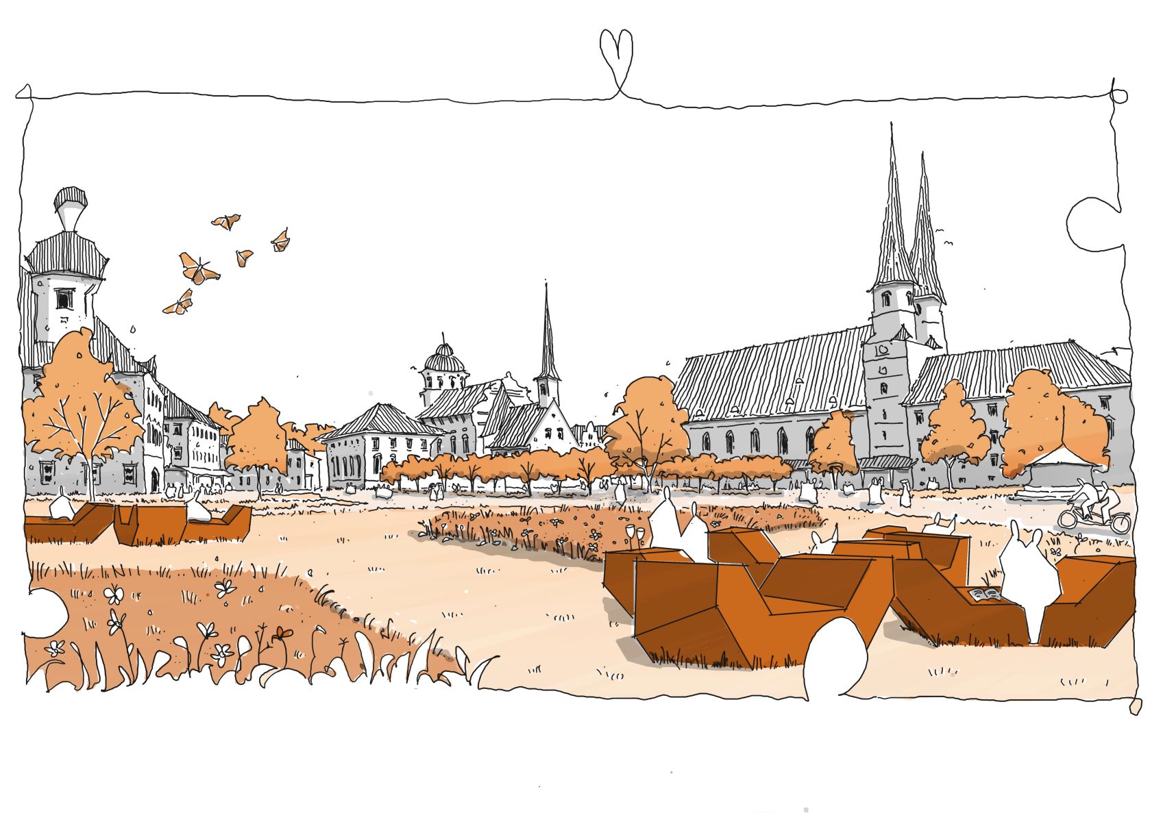 Die Stadt gehört ihren Bewohnerinnen und Bewohnern und denen, die sie besuchen – fernab von Konsumzwang. Das soll sich auch in der Gestaltung der öffentlichen Stadträume widerspiegeln. Insbesondere der Kapellplatz soll sich zu einem Platz für alle – der Wallfahrerinnen und Wallfahrer, aber auch für die Bevölkerung – entwickeln und zum Verweilen einladen.